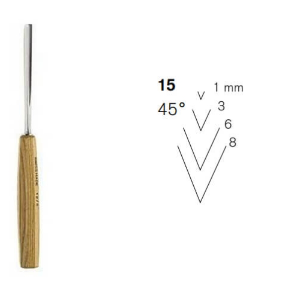 Rezbarsko dleto kotne oblike 15 je ravno z notranjim kotom 45°.