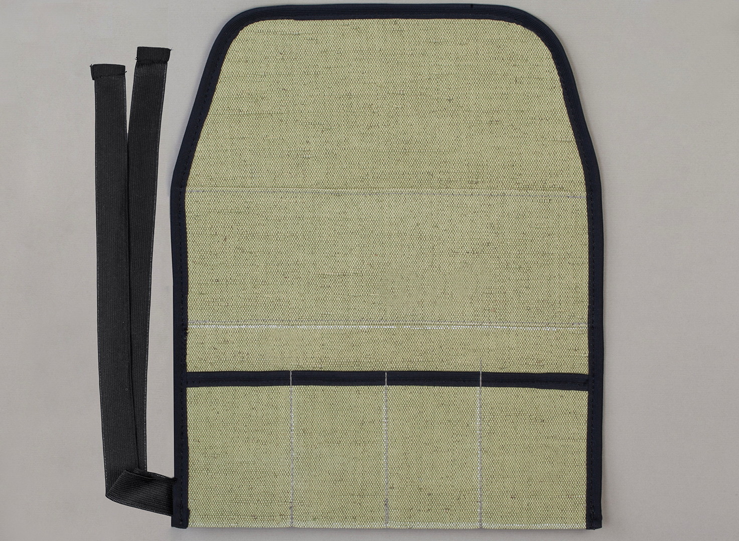 Platnen etui za orodje, ki lahko zadrži štiri orodja in ima močen trak za vezavo.