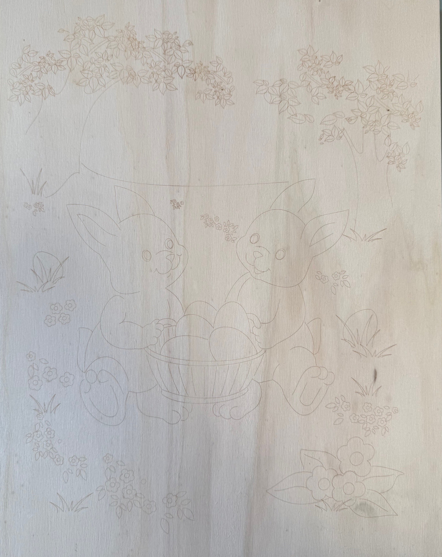 Predhodno narisan vzorec je izjemno tanek in po žganju izgine. Motiv lahko obrisujete z ustreznim orodjem za žganje lesa iz naše trgovine.