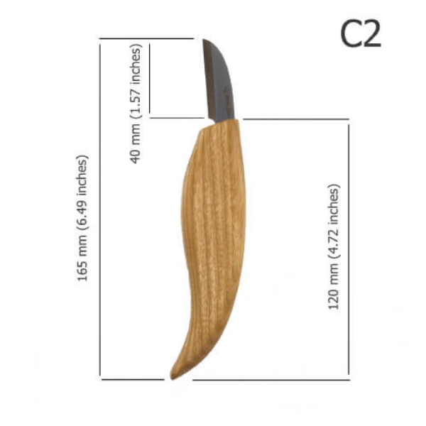 Rezbarski nož C2 je ročno izdelan iz visokoogljičnega jekla, kaljen in naostren za uporabo.